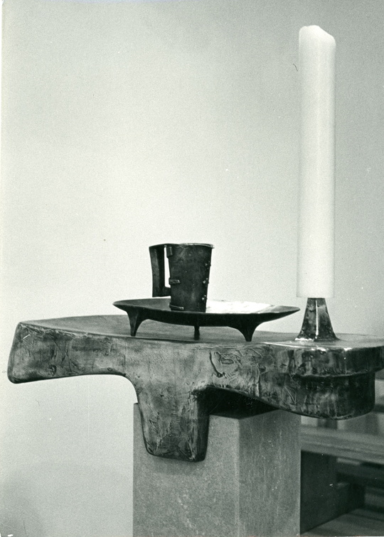Die Entwicklung der profanen Skulptur in den letzten Jahrzehnten gibt dem Bildhauer für seine kirchlichen Arbeiten deutliche Fingerzeige. Sie hilft ihm, indem sie sich von einer Kunst des Volumens auch zu einer Kunst des Raumes entfaltet hat. Schon wenige Monate nach dem Erscheinen der liturgischen Konstitution ist im Bestreben, alles zu erneuern, die deutliche Gefahr einer Überinstrumentierung entstanden, sowohl in der Ausstattung des Altarbezirkes wie in den liturgischen Funktionen. Alte Kirchen mit ihren engen Chorräumen bieten oft schlechterdings keinen Platz für die gewünschten liturgischen Änderungen. So wird zum Beispiel die Frage, ob der Wortgottesdienst und das Mahl in zwei räumlich getrennten Bezirken vollzogen werden müssen, eine ernsthafte. Sie lässt sich keineswegs immer auf ähnliche Art lösen. Es stehen dem Liturgiker noch ganz andere Möglichkeiten offen, um visuell die zeitliche Trennung von Wort und Mahl deutlich werden zu lassen. Es sei mit Nachdruck verwiesen auf das Kapitel „Altar und Mahlbereitung“ im Buch von Sr. Augustina Flüeler „Das sakrale Gewand“ (NZN Buchverlag, 1964). Die dort geschilderten Möglichkeiten der Ausbreitung des grossen Corporales usw. machen den Beginn des Mahles deutlicher schaubar als jede Dislozierung.