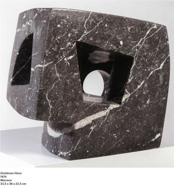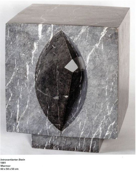 Neben diesen philosophischen Erwägungen war die Umsetzung seiner Plastiken von der Suche nach dem konkaven und somit dem leeren Raum bestimmt, den auch eine Tänzerin in ihren Bühnenskulpturen definierte. Schon die Form des Sakramentshauses im Kiliansdom ist ein sprechender Ausdruck dieser Suche. Der leere, hohle Raum war für Albert Schilling kein Selbstzweck. Vielmehr schien für ihn „der hohle Raum mehr Spiritualität auszustrahlen, als es die konvexe Steinmasse vermag. Die konvexe Masse strahlt Wucht aus, Aktivität, Aggressivität, Präsenz, Selbstbehauptung. Die konkave, hohle Form zeigt Geborgenheit, Stille, Konzentration, Geheimnis, Entmaterialisation, Antimonumentalität, Bescheidenheit.“ Vielfach sind diese Arbeiten lediglich als „Gehöhlter Stein“, als „Mythischer Raum“, als „Gehöhlter Stein“ oder eher prosaisch als „Zwei Konkave berühren sich“ bezeichnet. Oftmals jedoch tragen sie Titel, die die Suche des Künstlers nach spirituellem Ausdruck reflektieren. Albert Schilling griff dabei zum Beispiel gerne auf Anrufungen Mariens aus der lauretanischen Litanei zurück. Diese Gebetsrufe reichen bis in das 12. Jahrhundert zurück und sind reich an Bildern und Symbolen. Albert Schilling liebte Sprache und nutzte sie selbst äusserst gekonnt. Er formulierte nicht nur sehr versiert, sondern schrieb auch Gedichte, von denen hier im Katalog eine Auswahl zu finden ist. Die marianischen Ehrentitel gab er stets in lateinischer Sprache wieder. Er bewegte sich damit ein Stück gegen den Strom des Zeitgeistes, da in den 1970er- und 1980er-Jahren Latein als Liturgiesprache nahezu verschwunden war. Immer wieder liess Albert Schilling in den Texten zudem seine Kenntnis (kunst-)historischer Zusammenhänge erkennen. Auch seine Gedichte sind von der Lyrik vergangener Jahrhunderte inspiriert, so etwa von dem englischen Romantiker John Keats (1795 – 1821) oder dem in der Schweiz verstorbenen Rainer Maria Rilke (1875 – 1926).