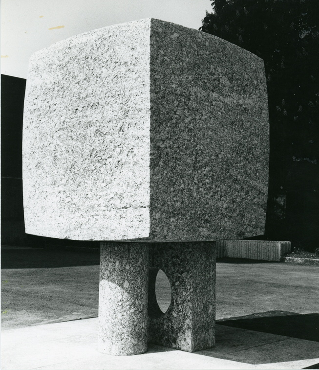 Die eine Fläche ist absolut plan geschliffen. Ihre formal wirksamen Elemente sind: die Ausdehnung, die Begrenzung durch vier gerade Linien und die vier rechten Winkel. Die andere Steinfläche ist kaum merklich gewölbt, so dass der Mittelpunkt circa 5 mm höher liegt als die Begrenzung. Der entscheidende Unterschied im Vergleich zur ersten Fläche ist, das diese nicht mehr geometrisch abstrakt ist, sondem sie ist zur Oberfläche des Steinvolumens geworden.